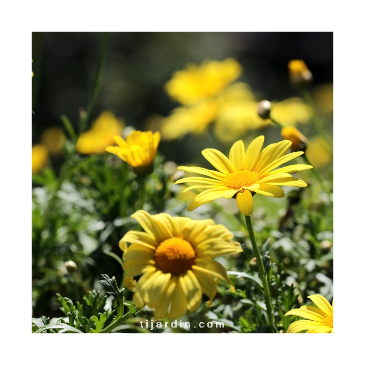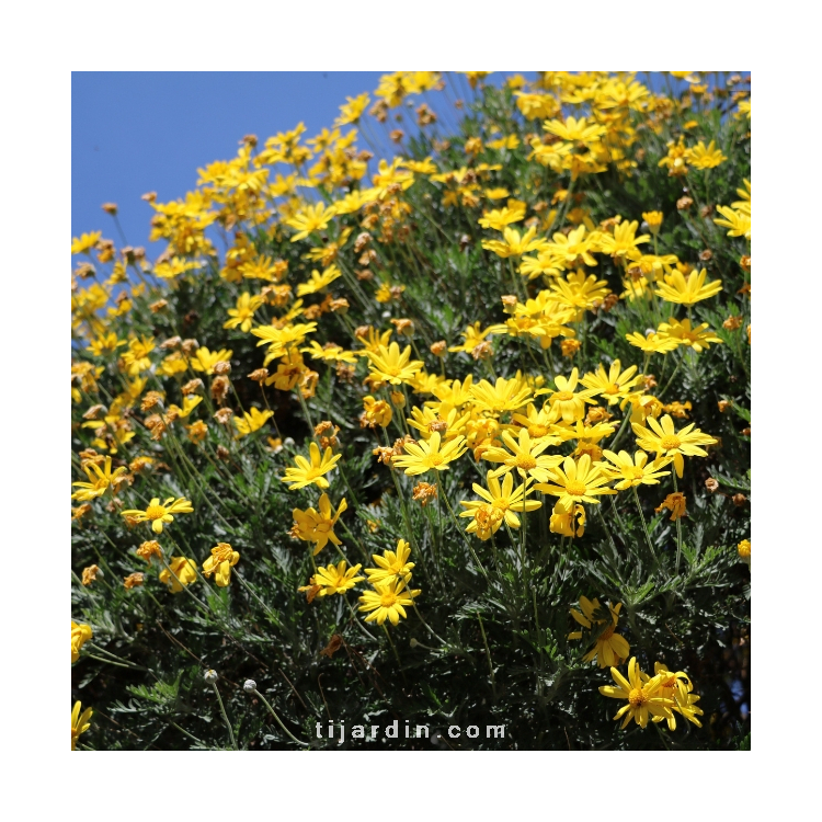 Son feuillage vert gris, élégant et très décoratif, est persistant en climat doux. L'euryops Pectinatus offre une magnifique et longue floraison de marguerites d'un jaune citron de avril à octobre parfois même toute l'année dans les régions les plus douces. La plupart du temps cultivée comme une vivace elle est également cultivée en annuelle dans certaines régions plus froides. L'Euryops Pectinatus fait partie de la grande famille des vivaces arbustives et buissonnante persistante mais peu rustique : elle résistera à des gels allant jusqu'à -5°C, au delà, il faudra penser à la protéger et la couvrir d'un voile d'hivernage. L'Euryops Pectinatus se plaira dans un massif, une serre ou en bac.